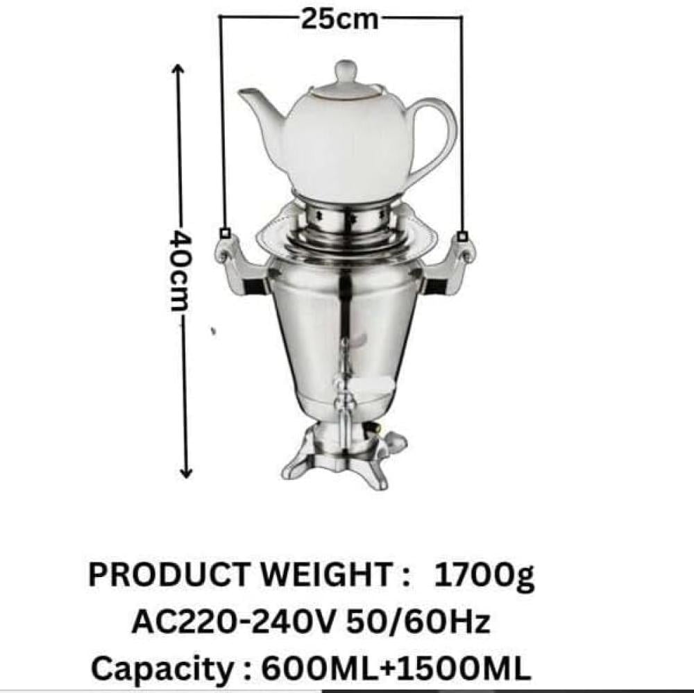 - سعة كبيرة: 600 مل (إبريق) + 1500 مل (سماور)، مثالي للعائلات أو لضيوفك.