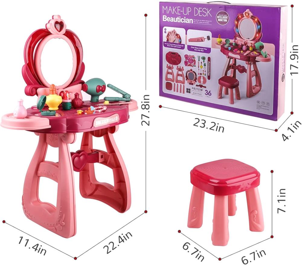 صممت لعبة صالون التجميل هذه بالأضواء والألوان وستحبها ابنتك. تضيف الحصيرة غير القابلة للانزلاق وميزة التحكم في الإضاءة