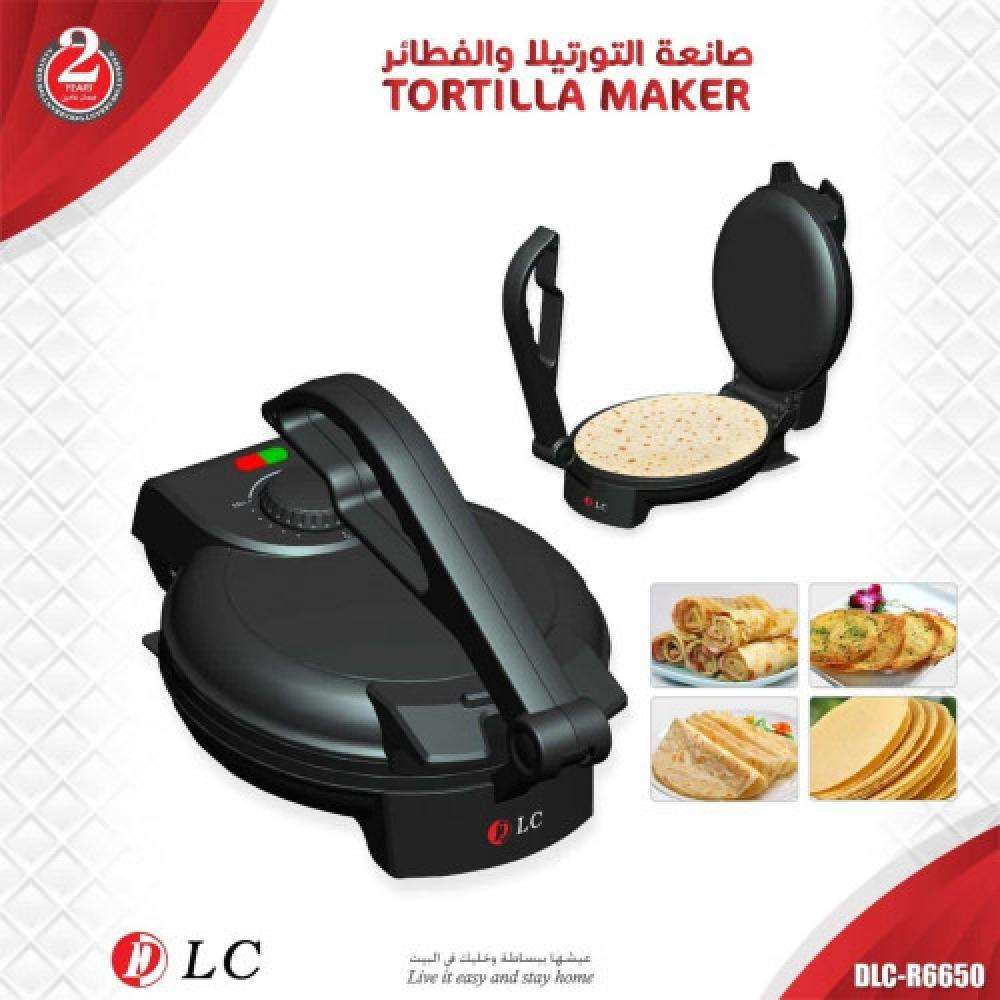 ارتقِ بمستوى مأكولاتك المكسيكية والشرقية! نقدم لك صانعة التورتيلا من DLC (Tortilla Maker)، الأداة المثالية لتحضير التورتيلا والخبز الرقيق بكل سهولة وسرعة. تصميمها الأنيق والجودة العالية يجعلانها إضافة ذكية وعصرية لأي مطبخ.