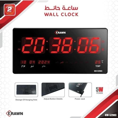 اضف لمسة من الأناقة والذكاء إلى منزلك مع ساعة الحائط الرقمية من KRAWN. هذه الساعة ليست مجرد أداة لمعرفة الوقت، بل هي قطعة فنية تجمع بين التصميم العصري والوظائف المتعددة لتمنحك الراحة والتحكم.