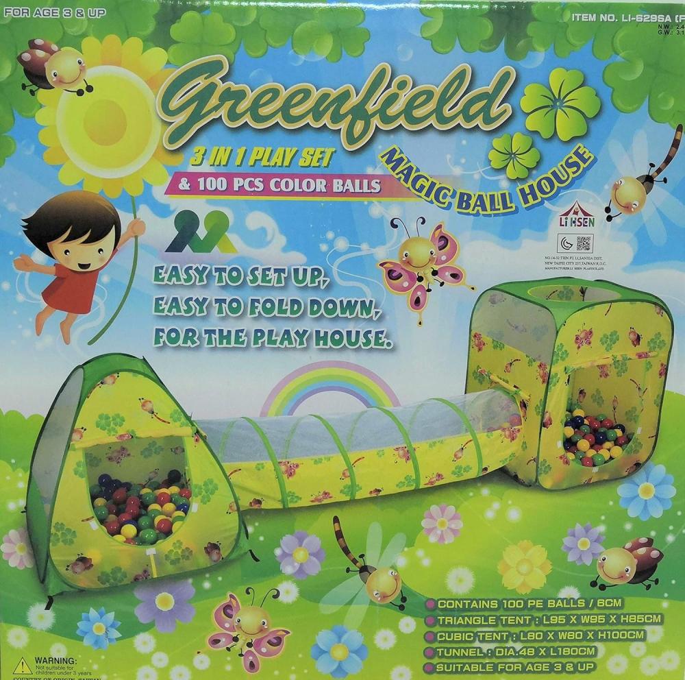 - تتضمن خيمة واحدة مثلثة، وخيمة مكعبة، ونفق، و100 كرة ملونة بحجم 6 سم. تساعد على منح طفلك ساعات من الأنشطة المسلية